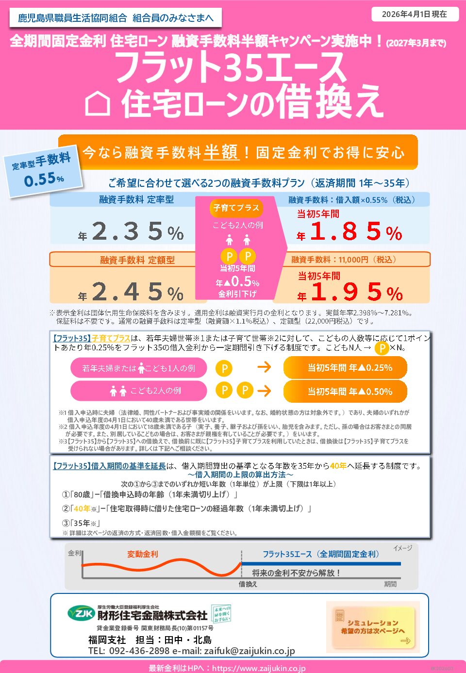 財形住宅金融は提携企業・団体の職員様限定に業界最低水準の金利・手数料で「フラット35」を提供しています。このたび鹿児島県職員生活協同組合様の指定店となり組合員のみなさまに提供できることになりました。お気軽にご相談ください。